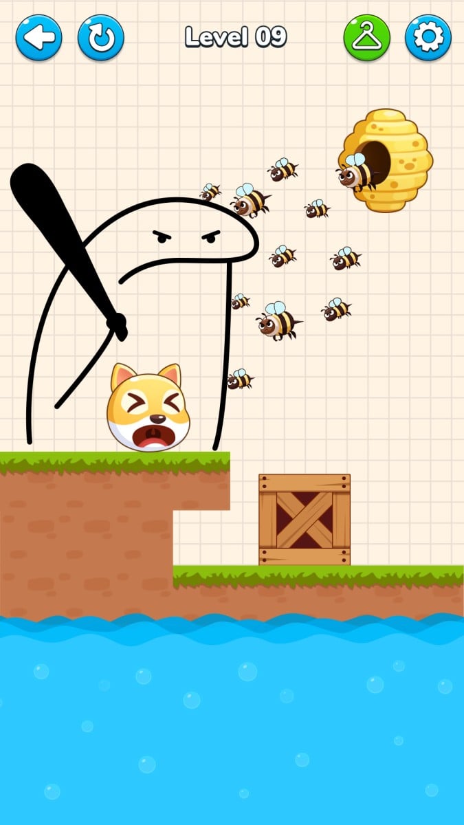 The protagonist of the game is a chubby, furry, innocent-looking puppy who always appears in dangerous scenes - it may be standing on the edge of a cliff, close to a beehive, surrounded by rolling stones, or even about to erupt hot lava. Your task is to draw a "protection line" on the screen with your finger before the crisis breaks out, build a safety barrier, and block everything that may hurt the puppy. Sounds simple? Then you are wrong.